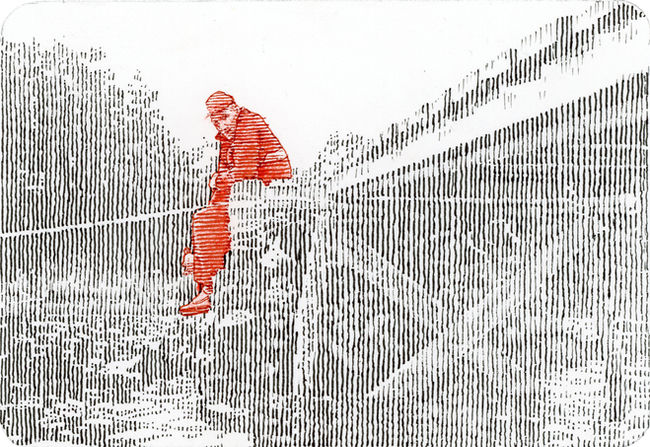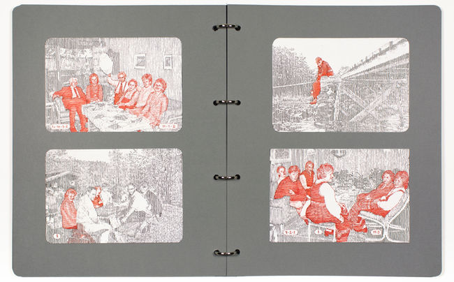 I recreated the 95 photos of my mother's memory album as drawings, partly to separate the images “belonging” to each of my parents' story in the film, partly to lift and unify the album's material visually, and partly to create a kind of filter.